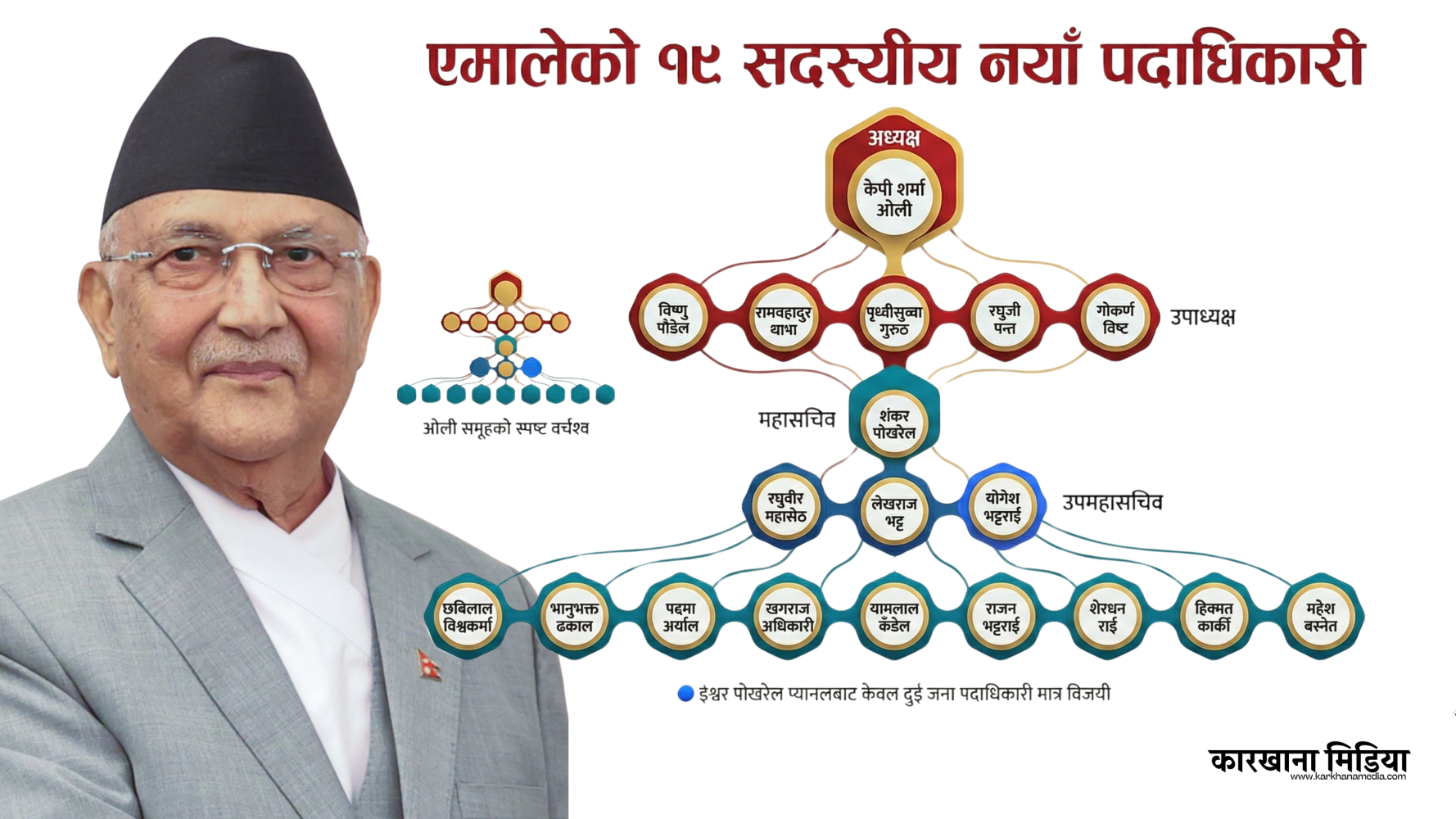 १९ सदस्यीय पदाधिकारीका लागि सम्पन्न निर्वाचनमा अध्यक्ष केपी शर्मा ओली नेतृत्वको प्यानलको स्पष्ट वर्चश्व देखिएको छ।