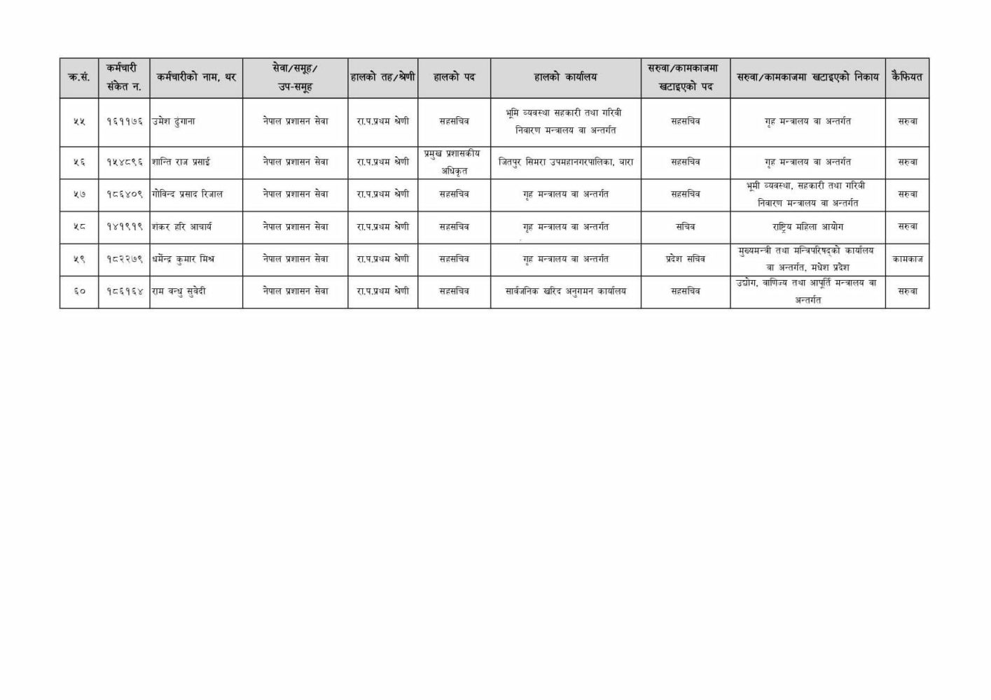 सरकारले ६० जना सहसचिवको सरुवा गरेको छ । बिहीबार बसेको मन्त्रिपरिषद् बैठकले ६० जना सहसचिवको सरुवा गरेको हो ।