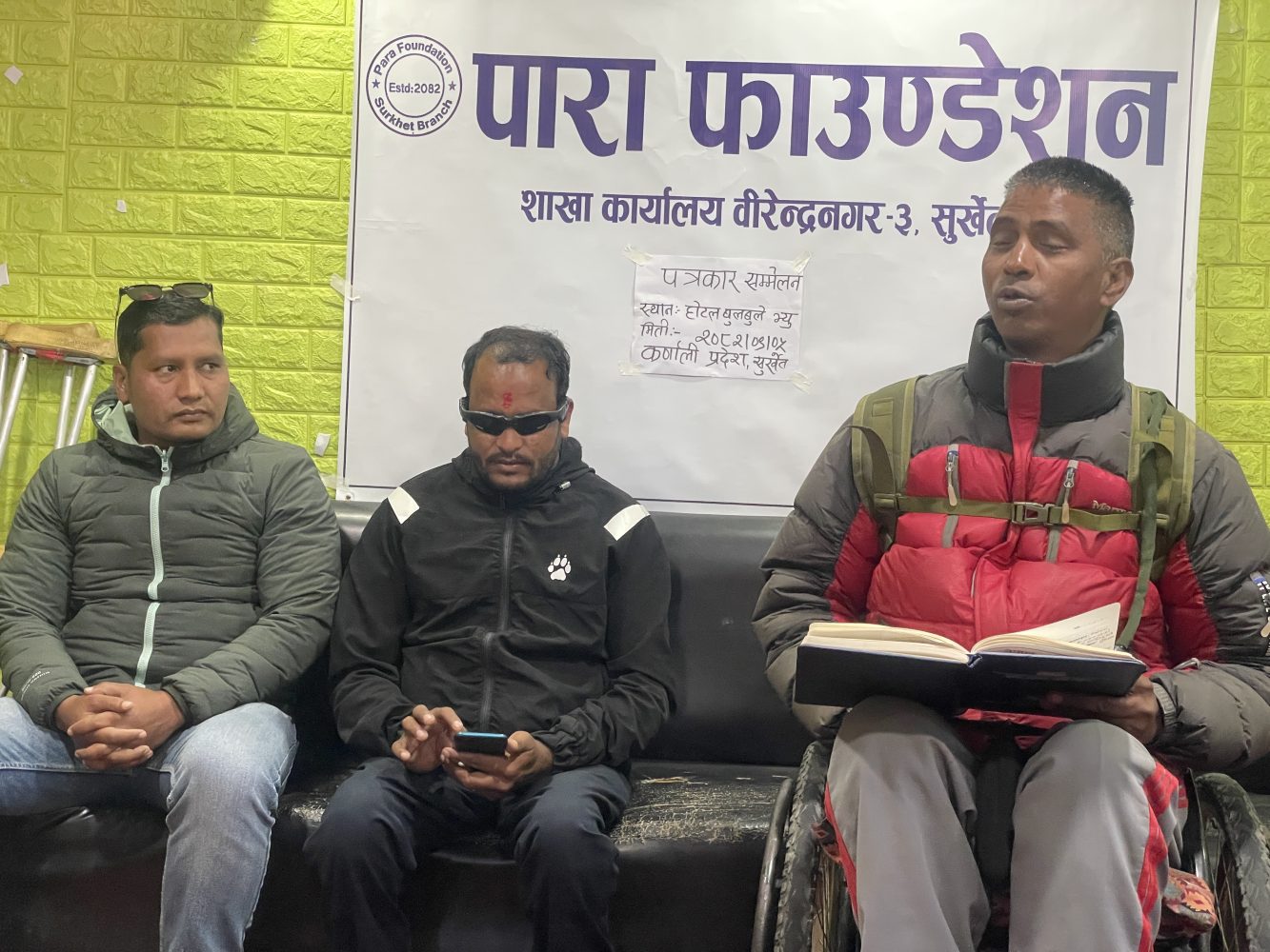 शनिबार सुर्खेतमा आयोजित पत्रकार सम्मेलनमा पारा फाउन्डेसन सुर्खेतका अध्यक्ष किशोर शाहीले अपाङ्गता भएका व्यक्तिहरूको खेलकुद क्षमता अभिवृद्धि गर्ने, समावेशी खेलकुदको प्रवर्द्धन गर्ने तथा अपाङ्ग खेलाडीहरूलाई राष्ट्रिय स्तरमा चिनाउने उद्देश्यसहित कार्यक्रम आयोजना गर्न लागिएको जानकारी दिए।
