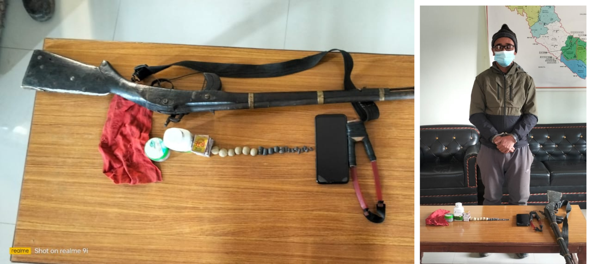इलाका प्रहरी कार्यालय लेकबेशी, सुर्खेतबाट खटिएको प्रहरी टोलीले पुस २३ गते बिहान करिब ११:३० बजे लेकबेशी–९ निवासी ३८ वर्षीय धनबहादुर रावतलाई १ थान भरुवा बन्दुकसहित बाटोमा हिँडिरहेको अवस्थामा पक्राउ गरेको हो।