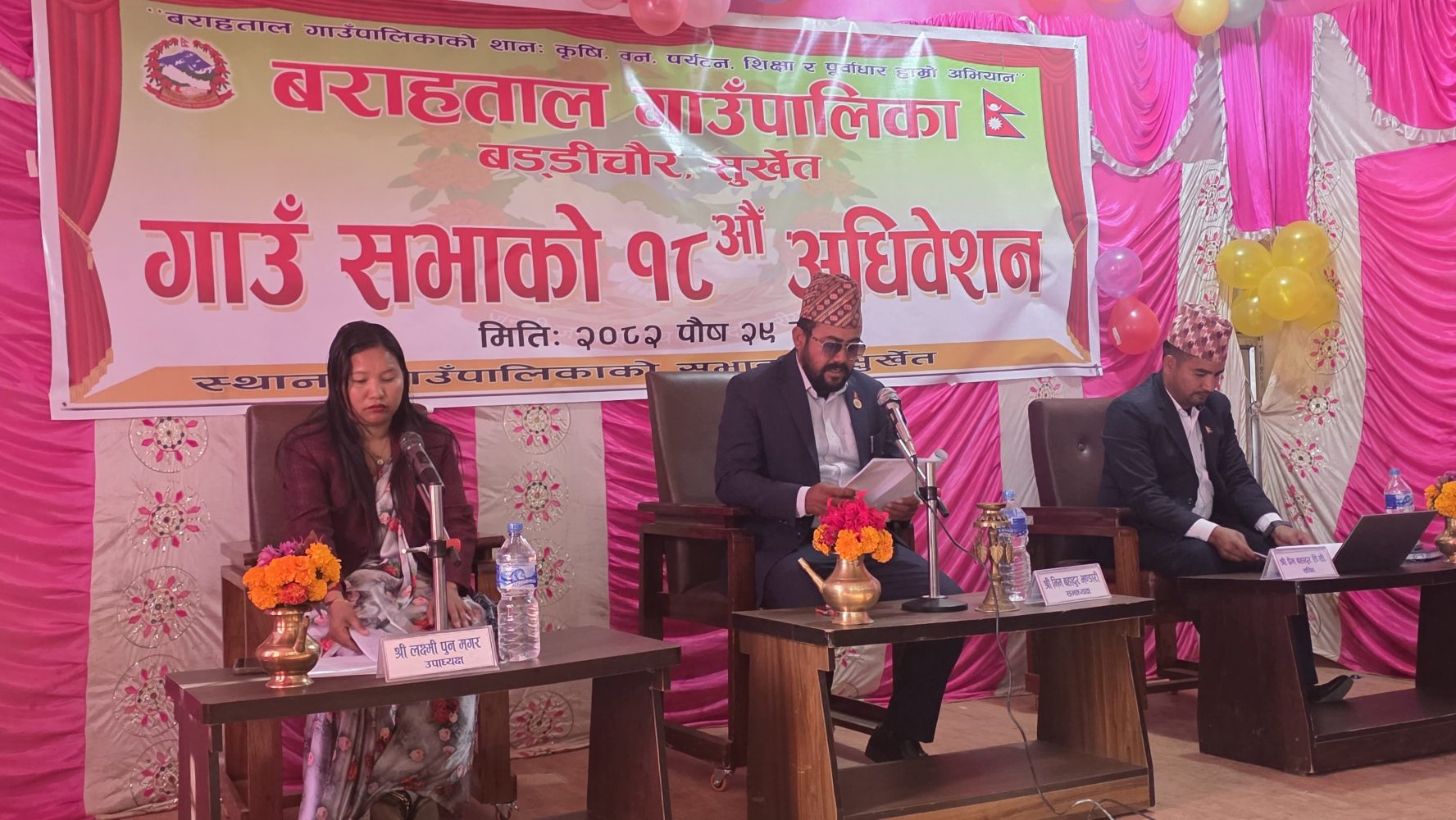 बराहताल गाउँपालिकाको गाउँसभाको १८ औँ अधिवेशन अध्यक्ष भिमबहादुर भण्डारीको अध्यक्षतामा सम्पन्न भएको छ।