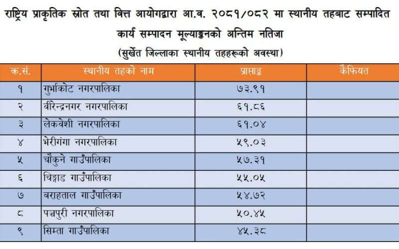 गाउँपालिकाले वडा नं. १ देखि १० सम्म संघीय, प्रदेश तथा गाउँपालिकाको बजेटबाट सुरु भए पनि हालसम्म सम्पन्न नभएका योजनाहरूको विवरण अनिवार्य रूपमा पेश गर्न भनिएको हो।