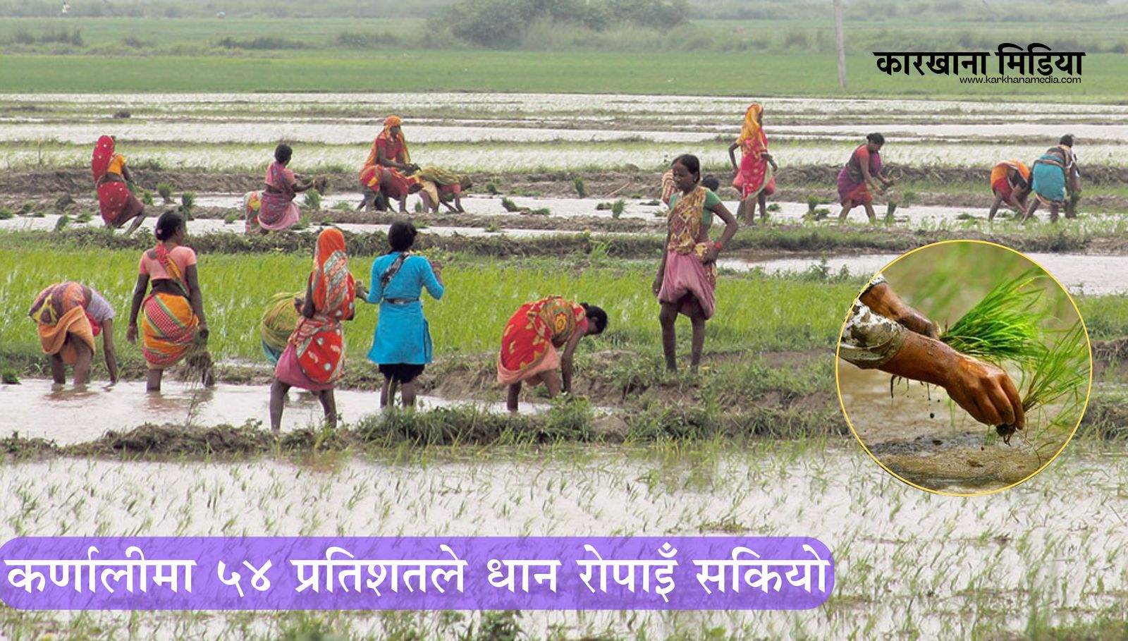 कर्णालीमा मनसुन छिट्टै सक्रिय हुँदा आकाशे पानीको भरमा धान रोप्नुपर्ने कर्णाली प्रदेशका जिल्लाहरू रोपाइँ धमाधम भइरहेको छ । हालसम्म कर्णाली प्रदेशमा विभिन्न जिल्ला गरी ५४.४६ प्रतिशतले रोपाइँ सम्पन्र भएको बागवानी विकास अधिकृत तथा सूचना अधिकारी टेकराज रेग्मीले बताए ।