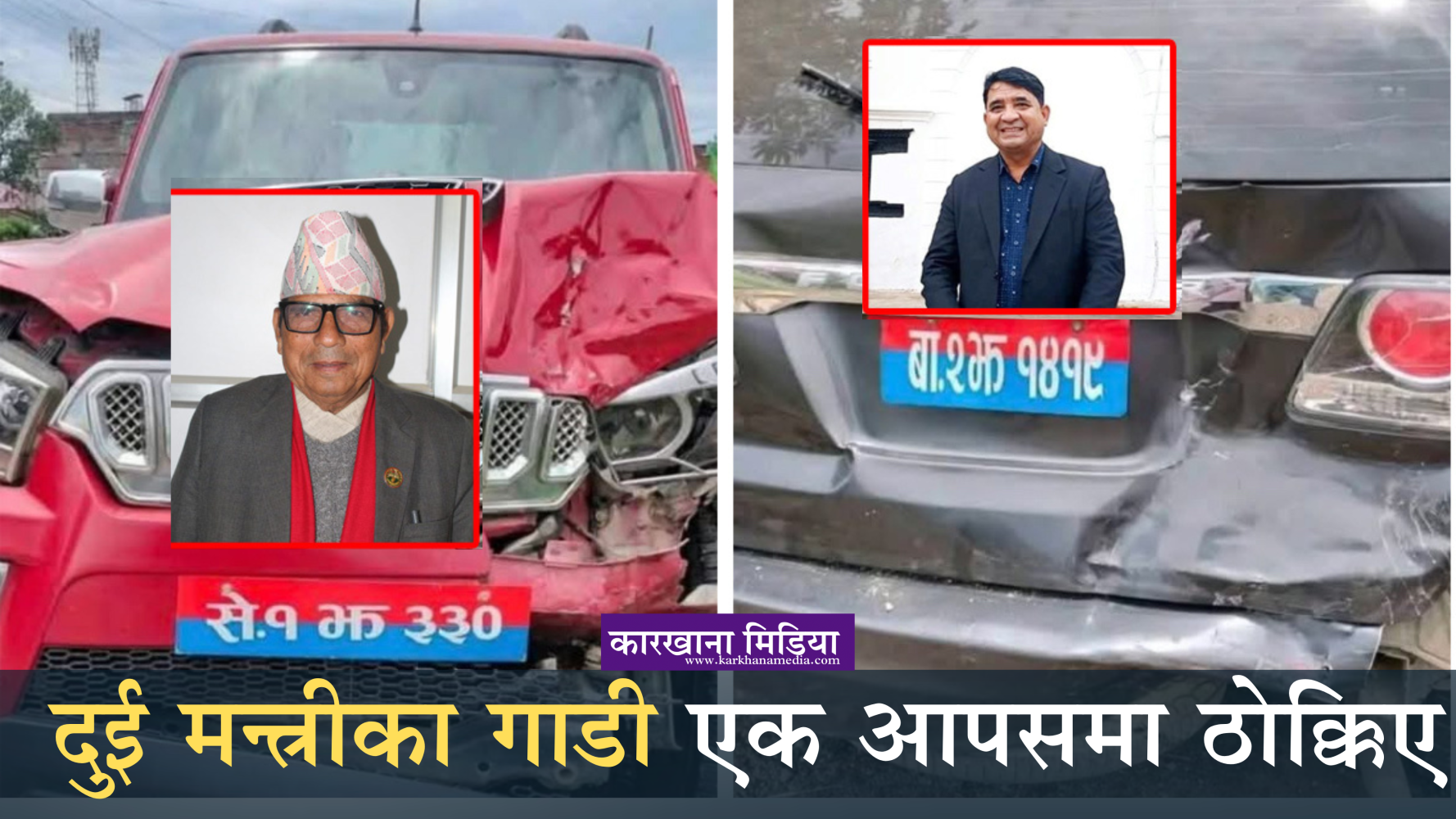 आन्तरिक मामिला तथा कानुन मन्त्री हिरासिंह सार्की र भौतिक पूर्वाधार विकास मन्त्री सुरेन्द्र पाल सवार गाडी मंगलबार एकआपसमा ठोक्किएर दुर्घटना भएको हो ।