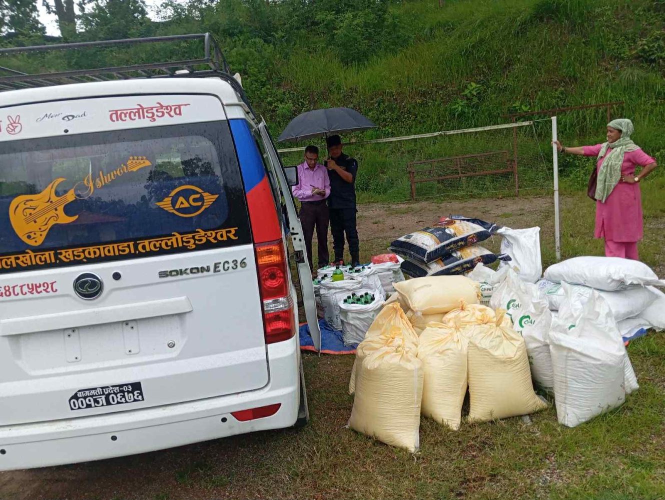 गाडी वीरेन्द्रनगर–१० का बालकृष्ण खड्काले चलाइरहेका थिए। गाडीमा यात्रु नभई मात्र सामान लोड गरिएको अवस्थामा फेला परेको प्रहरीले जनाएको छ। बरामद सामानमा २० केजीका ६ बोरा पास्ता, पानी पुरी बनाउन प्रयोग हुने ३० केजीका १९ बोरा चिनी, ५० थान चोसो पेय पदार्थ , २४ थान मिक्स जुस, २० प्याकेट काजु लगायत सामग्री रहेका छन्।