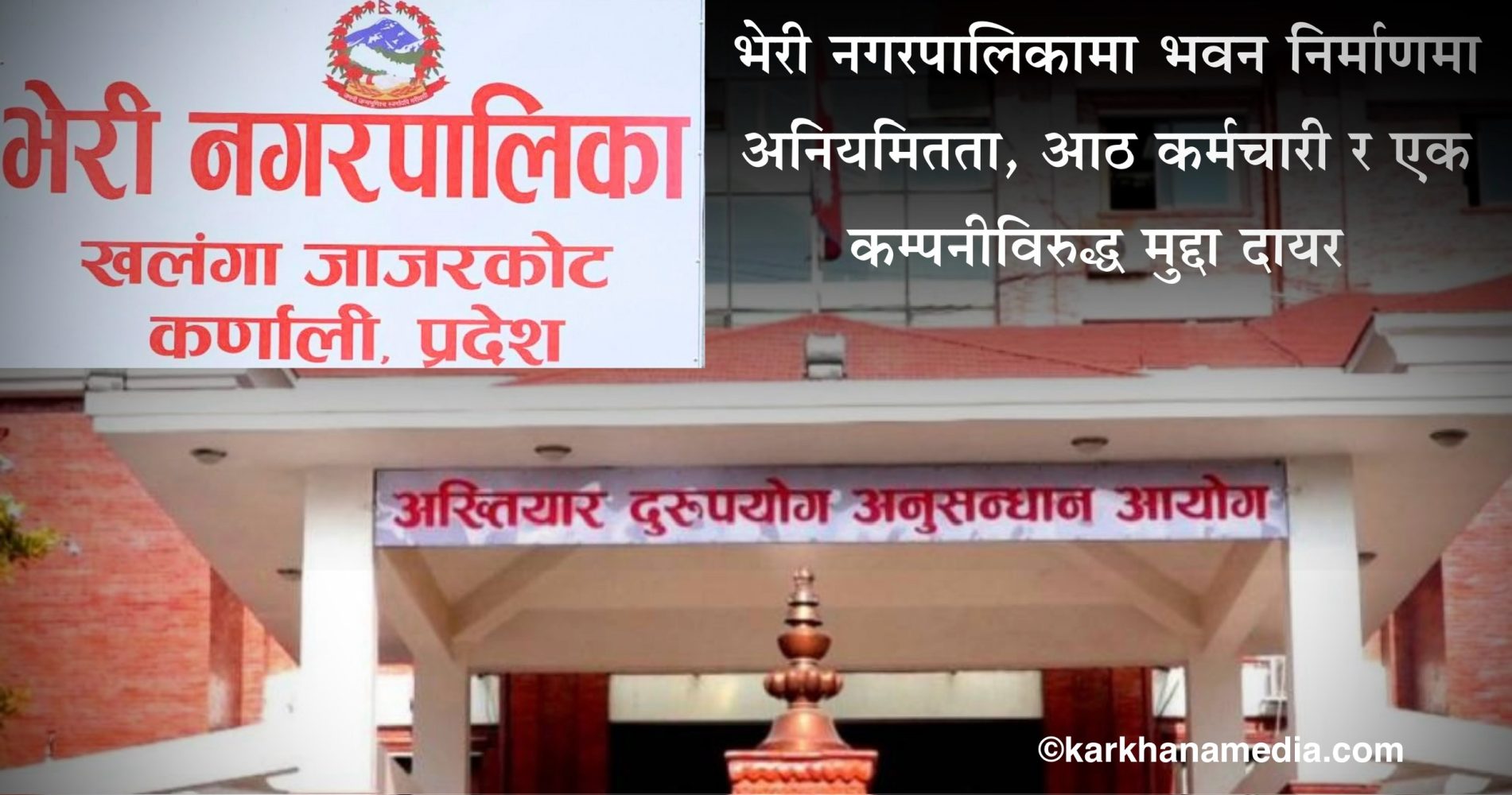 अख्तियार दुरुपयोग अनुसन्धान आयोगले जाजरकोटको भेरी नगरपालिकामा वडा कार्यालय भवन निर्माणमा अनियमितता भएको ठहर गर्दै आठ जना कर्मचारी र एक निर्माण कम्पनीविरुद्ध विशेष अदालतमा मुद्दा दायर गरेको छ ।