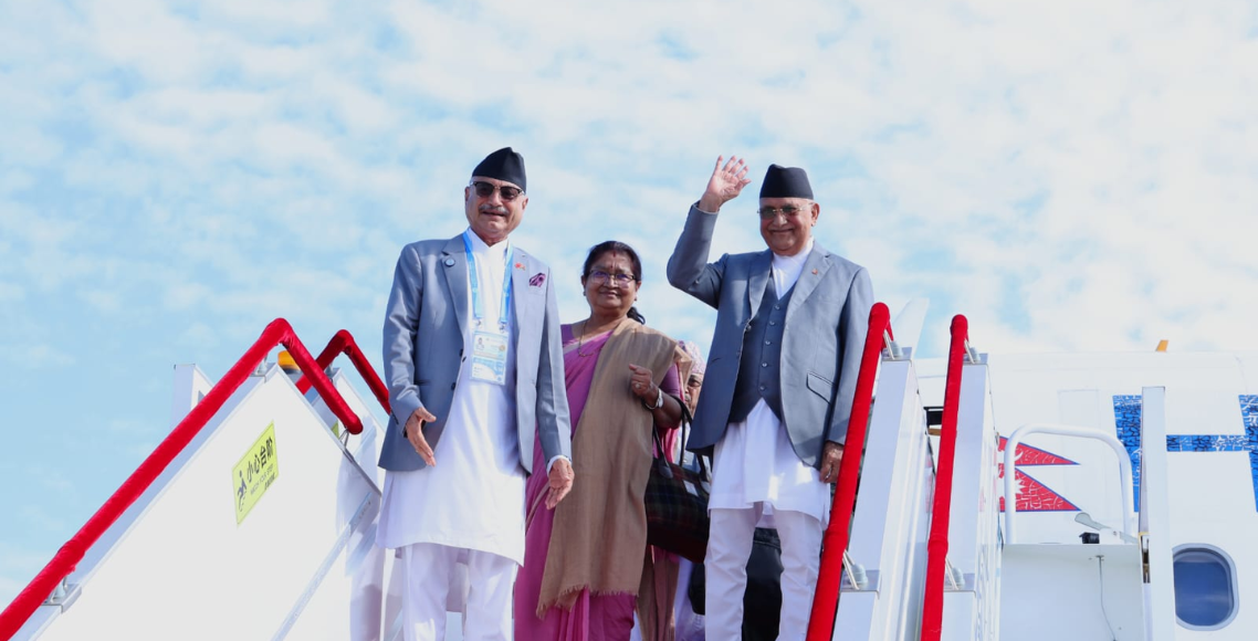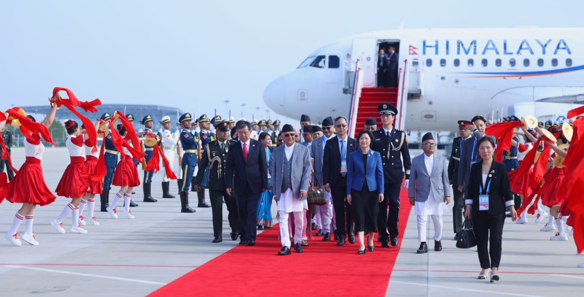 चीनका राष्ट्रपति सी चिनफिङको मैत्रीपूर्ण निमन्त्रणामा नेपाली प्रतिनिधिमण्डलको नेतृत्व गर्दै हिमालय एयरलाइन्सनको विशेष विमानमार्फत प्रस्थान गरेका उनी तियान्जिन विनहाइ अन्तर्राष्ट्रिय विमानस्थलमा पुगेका हुन्।